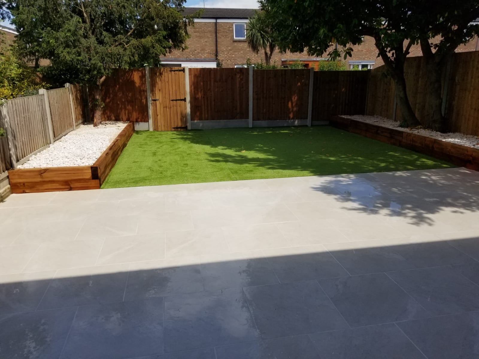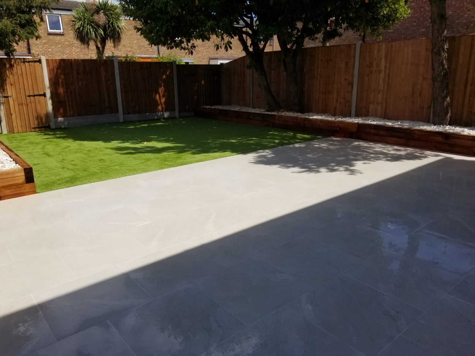 Garden landscaping with new porcelain tiles